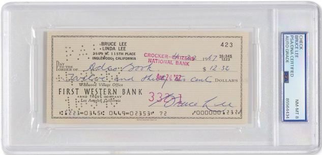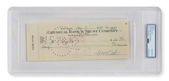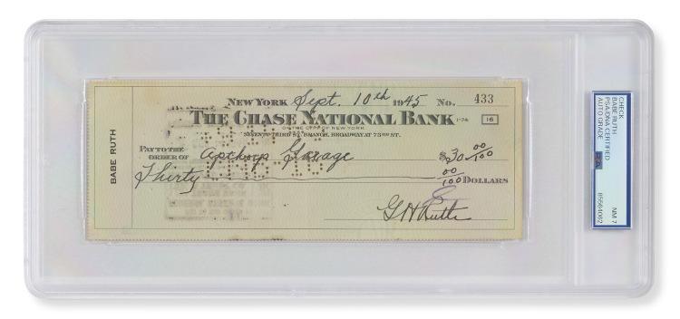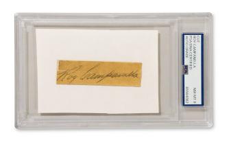 Light toning and handling wear with a minute tear and unobtrusive staple hole on the left edge. A small amount of more pronounced discoloration can be found along the extreme right. Authenticated and encapsulated by PSA with the autograph graded PSA/DNA 7 NM: NM