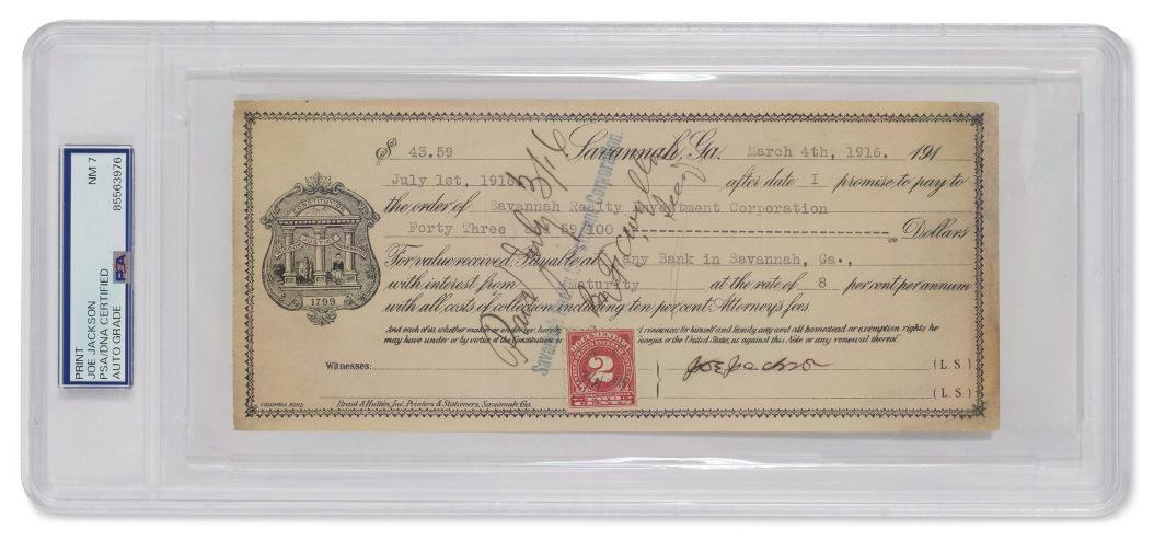 RARE AND IMPORTANT JOE JACKSON AUTOGRAPHED PROMISSORY NOTE (PSA/DNA 7 NM)
