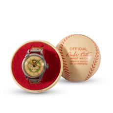 evokes a reverence that is reserved for a select few of our sporting idols. Substantive presentational pieces from this seminal era in baseball's history are few and far between. Teams had barely just begun bestowing rings or other pieces to commemorate Championship seasons, and many of the awards which we are familiar with today had not yet been conceived. It was most often left to the fans and other supporters to both produce and convey such honors. In recognition of his batting feats and contributions to the Tigers pennant winning season of 1907, funds were raised through the Atlanta Journal newspaper to present Ty Cobb with just such a tribute. As relayed in period newspaper accounts, "admiring fans in Georgia" raised funds and secured the pocket watch offered here from Schaul & May jewelers. That same article (from the 13 November 1907 edition of The Journal) pictured a large hand drawn rendering of the proposed design which matches the present lot, with some subtle differences easily accounted for in the production process. Text on the front reads, "Presented to Tyrus Raymond Cobb through