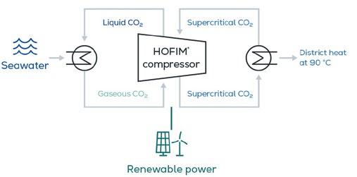 Mitten im UNESCO-Weltnaturerbe „Wattenmeer“ im dänischen Esbjerg versorgt eine gigantische Meerwasser-Wärmepumpe 25.000 Haushalte mit klimaneutraler Wärme. Zusätzlich stabilisiert sie das Stromnetz und gleicht Schwankungen der erneuerbaren Energien aus. Die Technologie dahinter besteht aus zwei Hochleistungskompressoren und einem transkritischen CO2-Kreislauf.