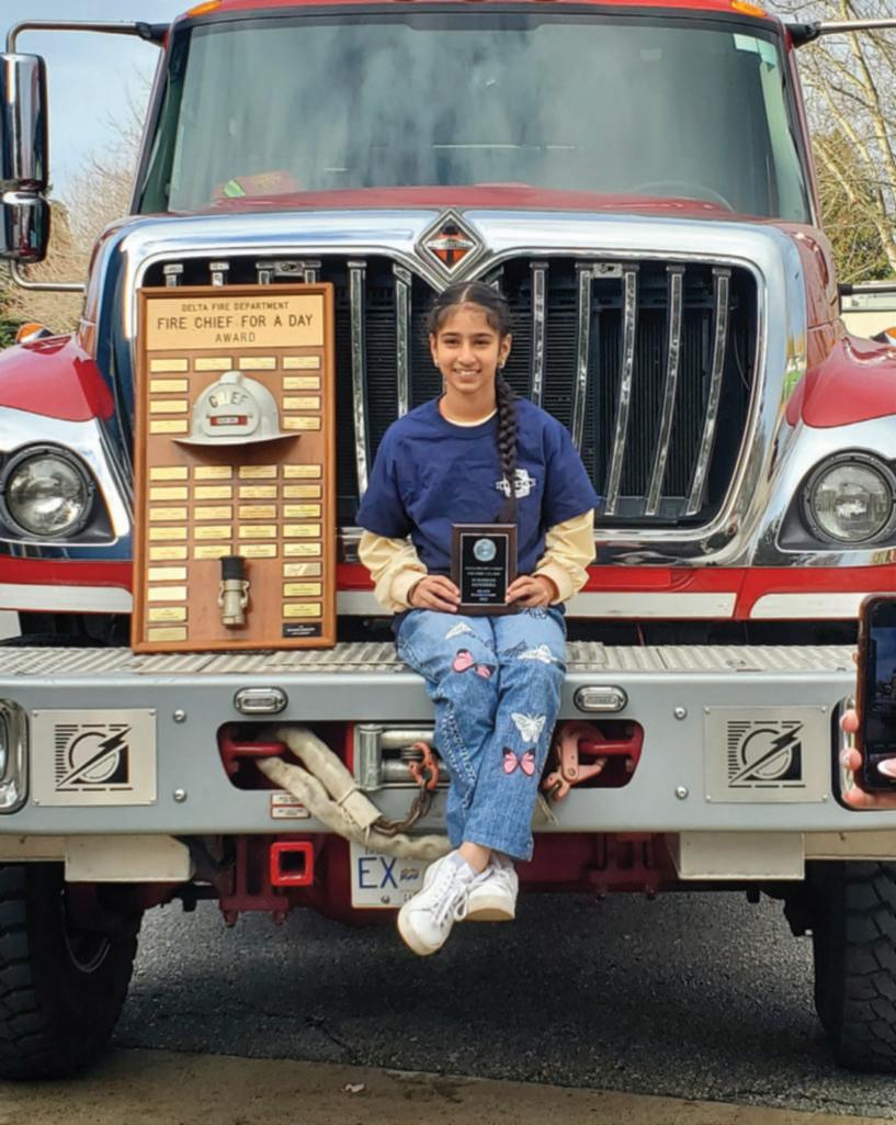 Sukhmani Sanghera, 10, of Heath Elementary School in North Delta was selected from student applicants across Delta schools to serve as Delta’s Fire Chief-for-a-Day.