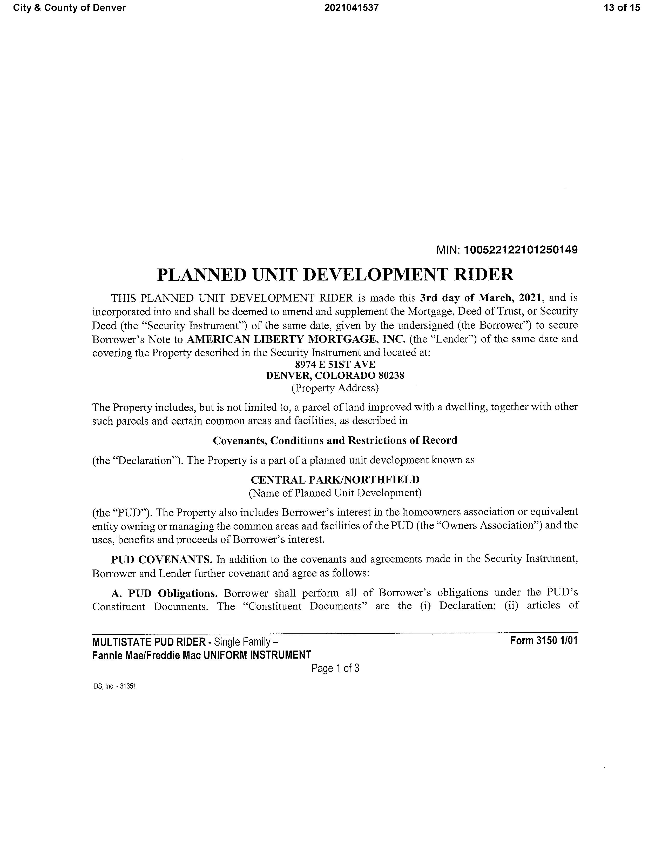 Subject Property : 8974 E 51st Ave Denver CO 80238