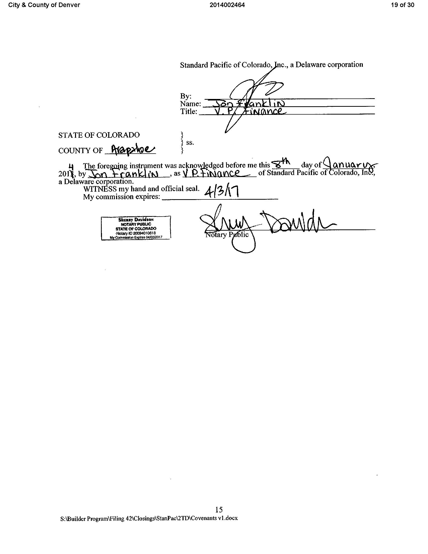 Seller : White Matthew E & Cassandra M Standard Pacific