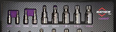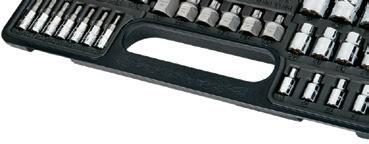 The Carbyne Tools 74-pc Master Torx Bit Socket & E-Torx Socket Set , No. 3101591, includes super short bit sockets (T10-T60), standard bit sockets (T6-T70), tamper-resistant bit sockets (T6H-T70H), and E-Torx sockets (E4-E24). Each bit features an active zinc phosphate coating for corrosion resistance and is press-fit into hardened chrome vanadium sockets for strength and durability. The set is manufactured under license from Acument Intellectual Properties for authentic Torx geometry and fit, and it meets and exceeds ANSI standards. The set is packaged in a durable case with clear size markings and comes with a lifetime warranty.