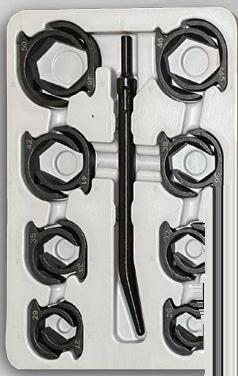 The LTI Tools by Milton SAE & Metric Crows Foot/Line Wrench Shockit 4-Pack Set , No. LT1945XL, features four 16-piece air-hammer-driven crows foot and line wrench sets. The wrenches can bust loose hydraulic fittings quickly without damaging the threads, and they are ideal for both heavy duty jobs and working in tight spaces. The SAE kit includes sizes ranging from 1-3/8” up to 2-1/2”, and the metric kit includes sizes ranging from 25mm to 50mm. Each set includes an 11” standard Shockit punch.