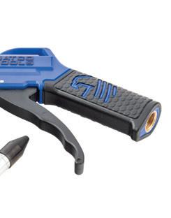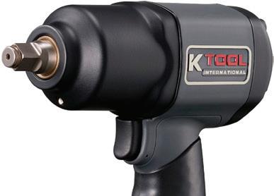 The K-Tool International 1/2” Drive Composite Impact Wrench , No. KTI81635, offers the best power-toweight ratio of all high-powered impacts, according to the company. It features a twin hammer mechanism that offers up to 1,350 ftlbs of breakaway torque. The wrench’s body is made of lightweight aluminum for user comfort, and it includes an exhaust handle to direct airflow away from the user and work area. The KTI81635 also has a variable speed trigger with three forward torque settings and a full-power reverse setting.