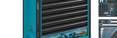 The Hazet Assistent 179NXL-8/388 Tool Trolley features eight drawers with five fully stocked soft foam inserts and a total of 388 tools selected for commercial vehicle/van workshops. The trolley includes a 1/4” bit smart case for delicate interior work, 3/8” and 1/2” fine-tooth reversible ratchets and sockets for engine and body work, and a range of screwdrivers and T-wrenches. A wide range of slogging wrenches, combination wrenches of up to 41mm, and ratcheting combination wrenches up to 32mm are also included. The trolley itself features double-walled, fully welded construction with edge protection and internal damping. The drawers have a load capacity of 40kg and an automatic self-closing function.