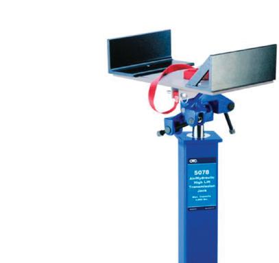 The 2,000-lb Capacity High-Lift Transmission Jack , No. 5078, from OTC , is designed for trucks and buses. The jack features a foot-operated air pump that enables the operator to effortlessly raise the transmission into place. The rugged heavy wall tubing and oversized base for stability. A dedicated adapter for Allison 500 and 600 series automatic transmissions is included. Features a low height of 41-1/2” allowing transmissions to be rolled out from under the vehicle’s frame.