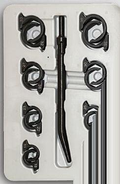 The Ajax Tools 9-pc Master Chisel Set , No. A9029, offers a wide range of professional-grade, American-made chisels. Each chisel has been selected to give the technician the ability to complete the most demanding applications necessary to get the job done. This set includes a scraping chisel, bushing splitter, claw ripper, muffler cutter, panel cutter, flat chisel, tapered punch, rivet cutter, and Kwik Cutter chisel.