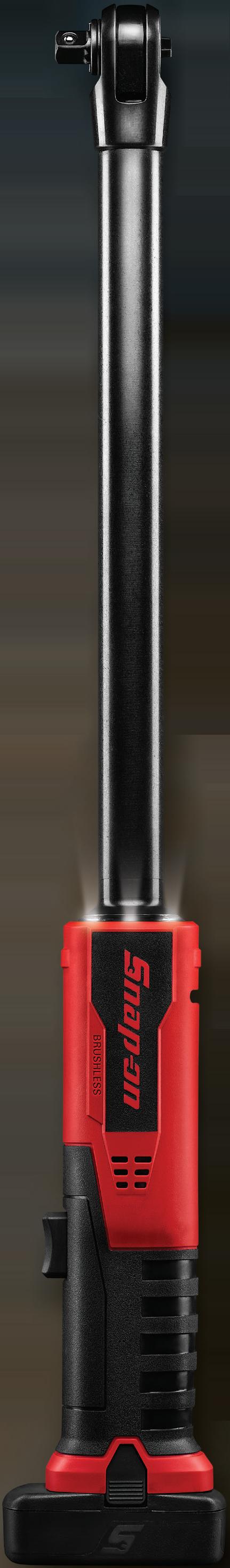 The Snap-on Extra Long-Neck High-Torque Ratchet , No. CTR869, features a 13” neck that provides an additional 7” of reach compared to standard extended ratchets. It includes a 6-LED ring light to illuminate dark workspaces and offers up to 80 ft-lbs of torque output to remove stuck fasteners. It also features a variable speed trigger to give users precise tool control.