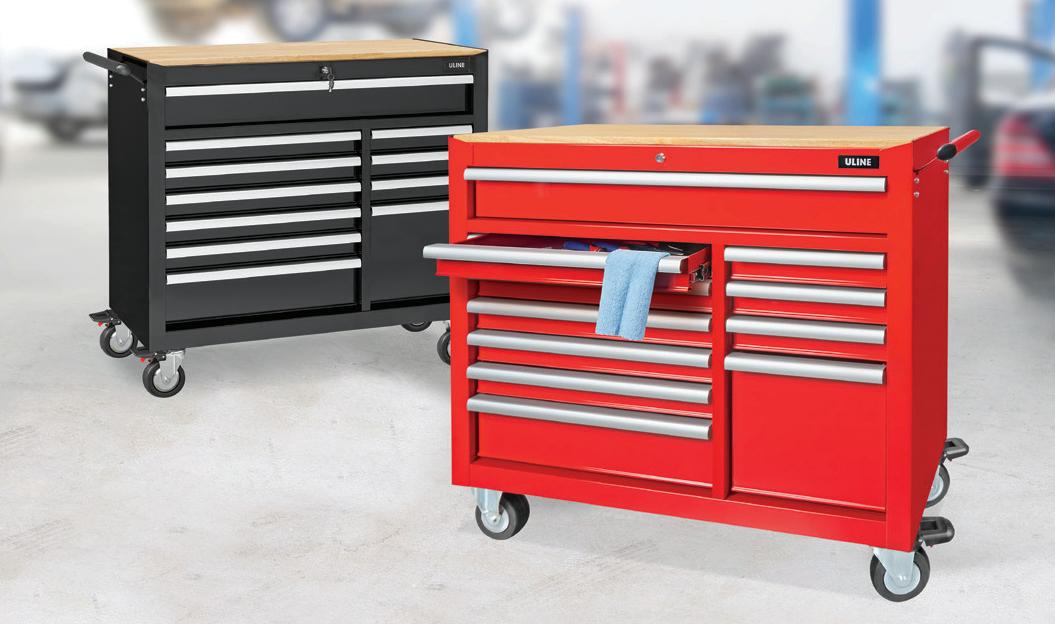 The Bench-Top Tool Chests , Nos. 91879 and 91881, from Wiha Tools, include top storage, three full-size drawers, and three slim drawers. The tool chest features a combination/key lock, comfort grip handles, and gas struts for improved opening and closing safety. It is built for durability and longevity, constructed from coldrolled steel, and finished with a durable powder coat. Comes in white (No. 91879) or black (No. 91881).