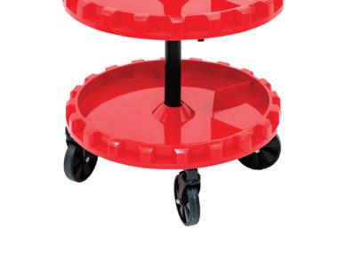 The Traxion Spinning Tool Tower features a sturdy base with 5” hard plastic casters with smooth-spinning rotation, allowing easy access to every angle of the tower. The round design and multiple shelves and compartments maximize storage space, and each tray has a weight capacity of 35 lbs.