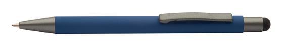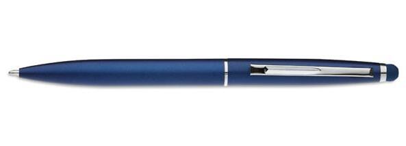 Twist action ball pen in aluminium with stylus and matt finish. Blue ink.