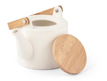 Ball pen in recycled ABS with bamboo push button. Blue ink.