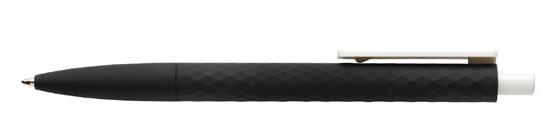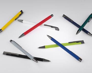 Push button ball pen in rubberized finish. Blue ink.