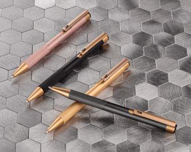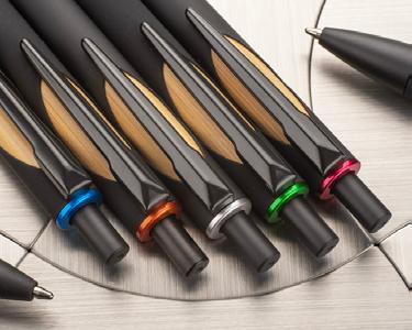 The FRANK ballpoint pen has a pleasant soft touch surface. The bamboo element and metallic finish make the pen look elegant and modern.