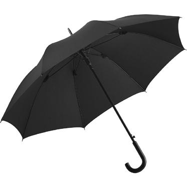 Convenient automatic function for quick opening, Windproof system for higher flexibility and stability in windy conditions, flexible fibreglass ribs, dull black plastic crook handle, higher corrosion protection due to galvanized steel shaft. Also available as regular umbrella (art. 1104).