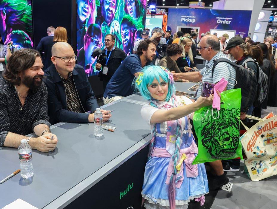 Matt Berry (l.) and Mark Proksch of FX’s What We Do in the Shadows take a selfie with a fan during a July 25 signing at San Diego Comic-Con.