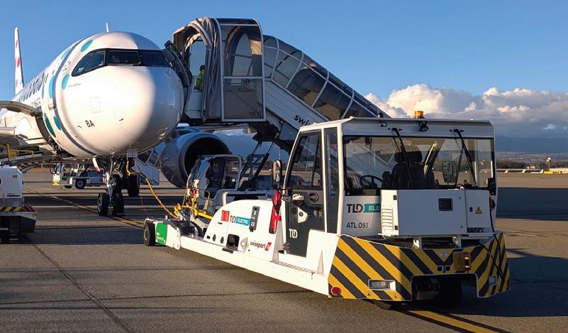 Swissport has completed what it describes as Switzerland’s rst fully electric aircraft turnaround at Geneva Airport, using only battery-powered ground support