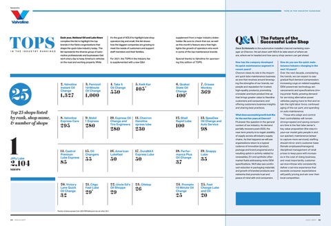 it’s the goal of NOLN to highlight lube shop operators big and small, this list shows how the biggest companies are growing to meet the needs of customers and support staff members and their families.