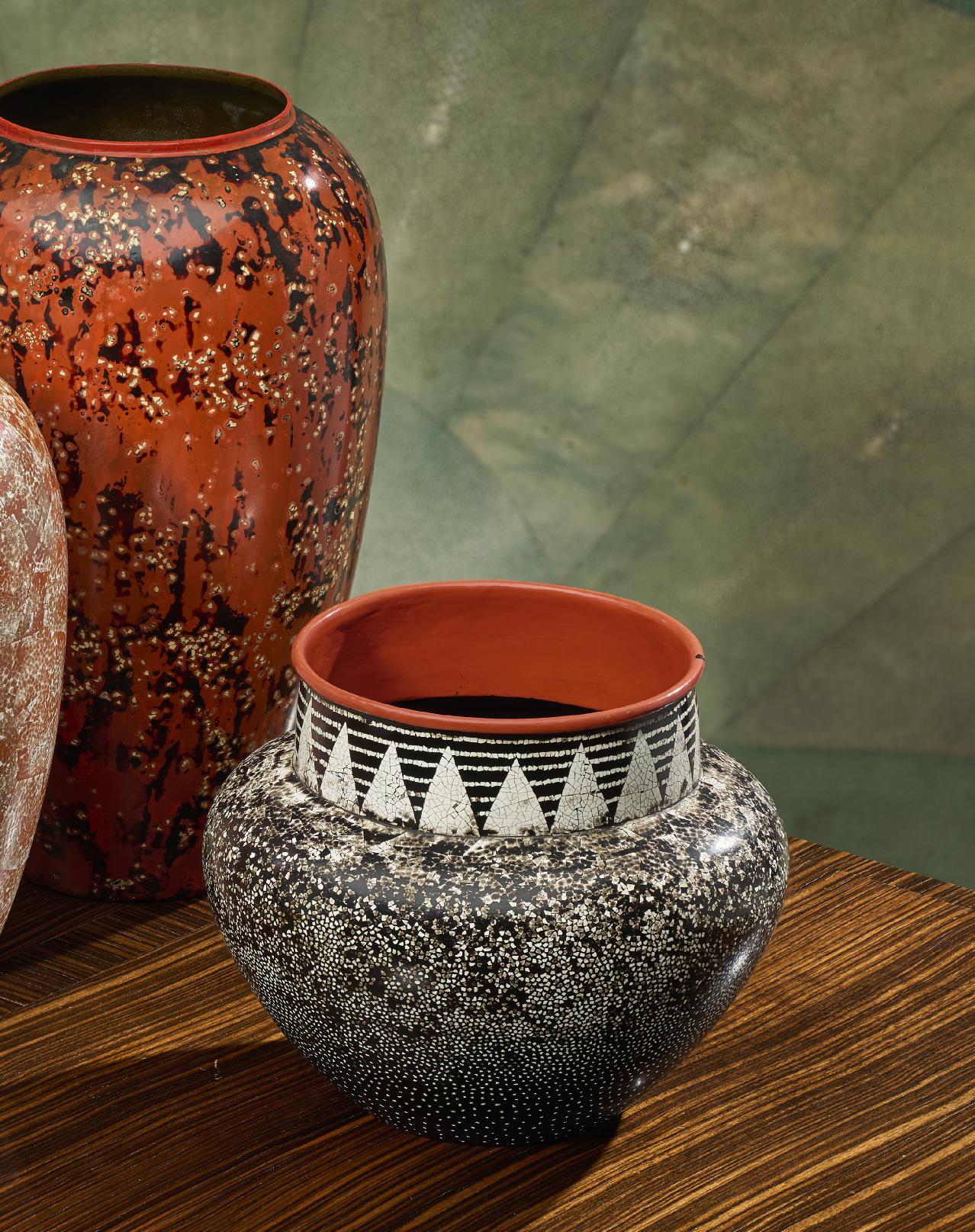 A collection of Jean Dunand lacquer vases in the Chicago residence of Stefan Edlis and Gael Neeson, 2025. Christie’s Images