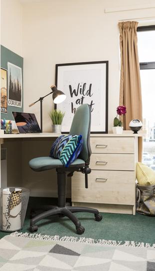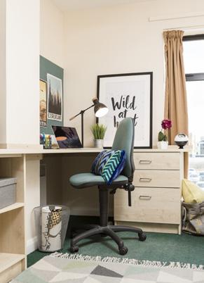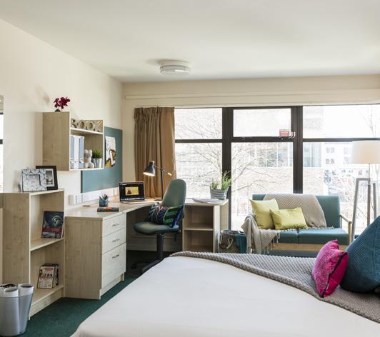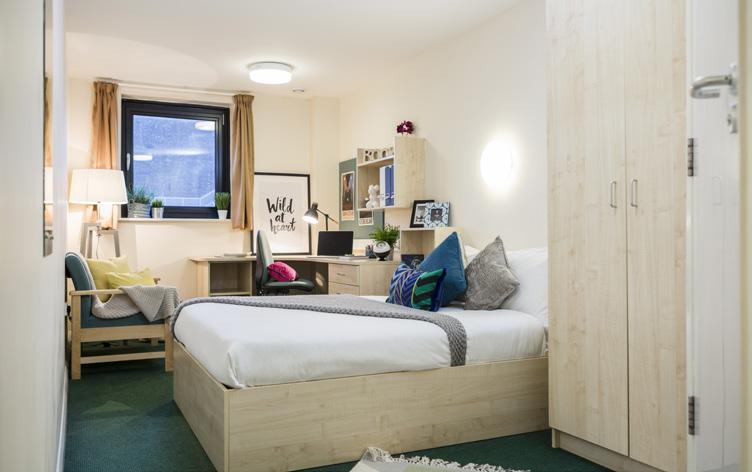 Great value for money as they come with your own private bathroom. Your space will include a comfortable single bed, a study area and lots of storage.
