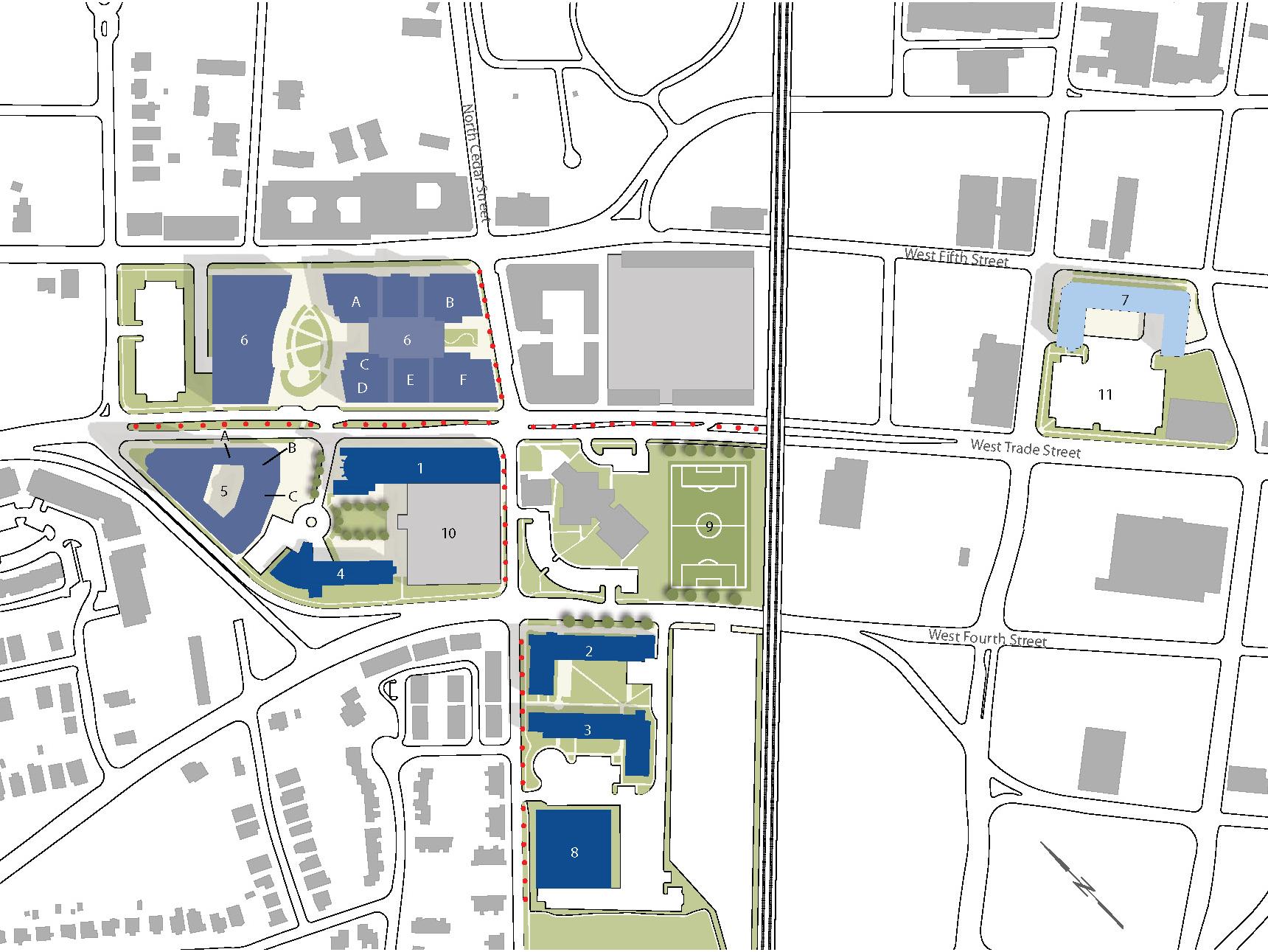 1. Academic Center 2. Cedar Hall North