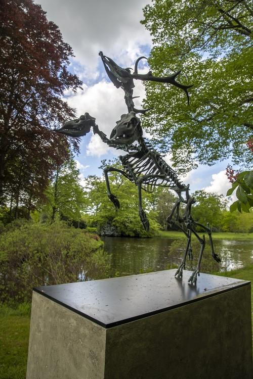 In Marianna Simnett’s Return of the Herd, we see a large 3-headed skeleton of a mutated deer. It stands tall upon its four hind legs, energised in a majestic composition. Simnett has stated that this is a memorial piece paying homage to the animals killed via culling, encapsulating and immortalising them in this hybrid form (Ontwerpers 2022). Simnett is providing us with a possible vision of nature’s future. The pose, skeletal form and plinth all encapsulate a scene reminiscent of a historical museum suggesting this piece does not simply function as an artwork, but also as an artifact. Could this be a relic from the future? Technology is a vampire, constantly becoming more powerful after each advancement by draining the life of nature itself. To overcome it, the beasts of our ecosystem must evolve with it. It is not enough to simply witness the Glitch. You must become the Glitch to survive the Anthropocene. This sculpture will be exhibited at the entrance of the site, establishing a clear concept of ecological death for the viewer to acknowledge throughout