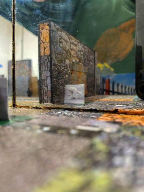 The building constructed for this exhibition will have a mirrored exterior, camouflaging into Dundee’s urban environment where the collision between nature and humanity’s technological hand is more present than ever. It is easy to overlook the ethics mirrors hold due to their typical status as common household items. However, in the context of this contemporary art exhibition, mirrors immediately implicate the viewer and become a prophetic reminder that this is our mass extinction occurring. The Literary theorist Lubomìr Dolezel analyses the art of imitation – one that is embedded in mirrors – that, in Plato’s theory, is referred to as “mimesis”: