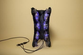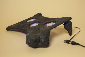 In her series of sculptures titled E-waste, Katherine Behar fabricates a glimpse into a future where technological devices continue their functions in the form of “half-fossilized mutants” (Behar, 2014). Encased in stone, the technological gadgets blur the boundaries between the natural and technological worlds, almost creating a sort-of ‘what came first, the chicken or the egg’ scenario: has technology invaded natural forms, or are these relics of an electronic future? What is clear within these sculptures is Behar’s statement on society’s intensive production of technological devices that we cast away, in this context in the corner of ‘Room 2’ This functions as a prophetic reminder of Ewaste functioning as a Glitch, removing the viewer from the mesmerizing digital world and presenting them with the consequences of virtual immersion