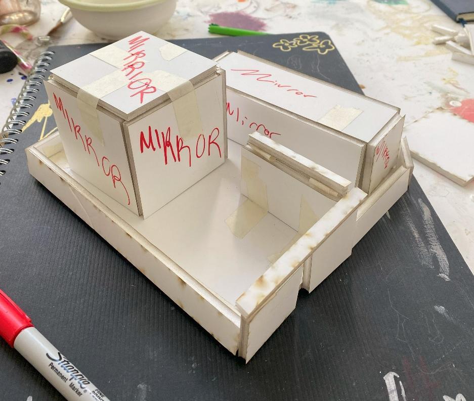 Exhibiting these artworks in an entirely mirrored building was influenced by the Maraya in Saudi Arabia, a large venue known for hosting numerous events, such as concerts and exhibitions When he submitted the design, Florian Boje – the architect of the Maraya – discussed his design process: