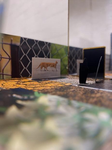 The unusual presentation of this work – in a large, mirrored cube sitting amongst rubble and debris – separates this artwork from existing in a pretentious lane that nurtures an elitist audience Indeed, the exhibition’s interior is itself a direct refusal of the White Cube’s standards. The artworks in the mirrored cube will be exhibited in a black room, with nothing lit except the exhibited pieces Once entering the space, all viewers must navigate their journey with caution, care and hesitation. These feelings truly prepare humanity for our impeding extinction and leave little room for elitist judgements to develop amongst the audience