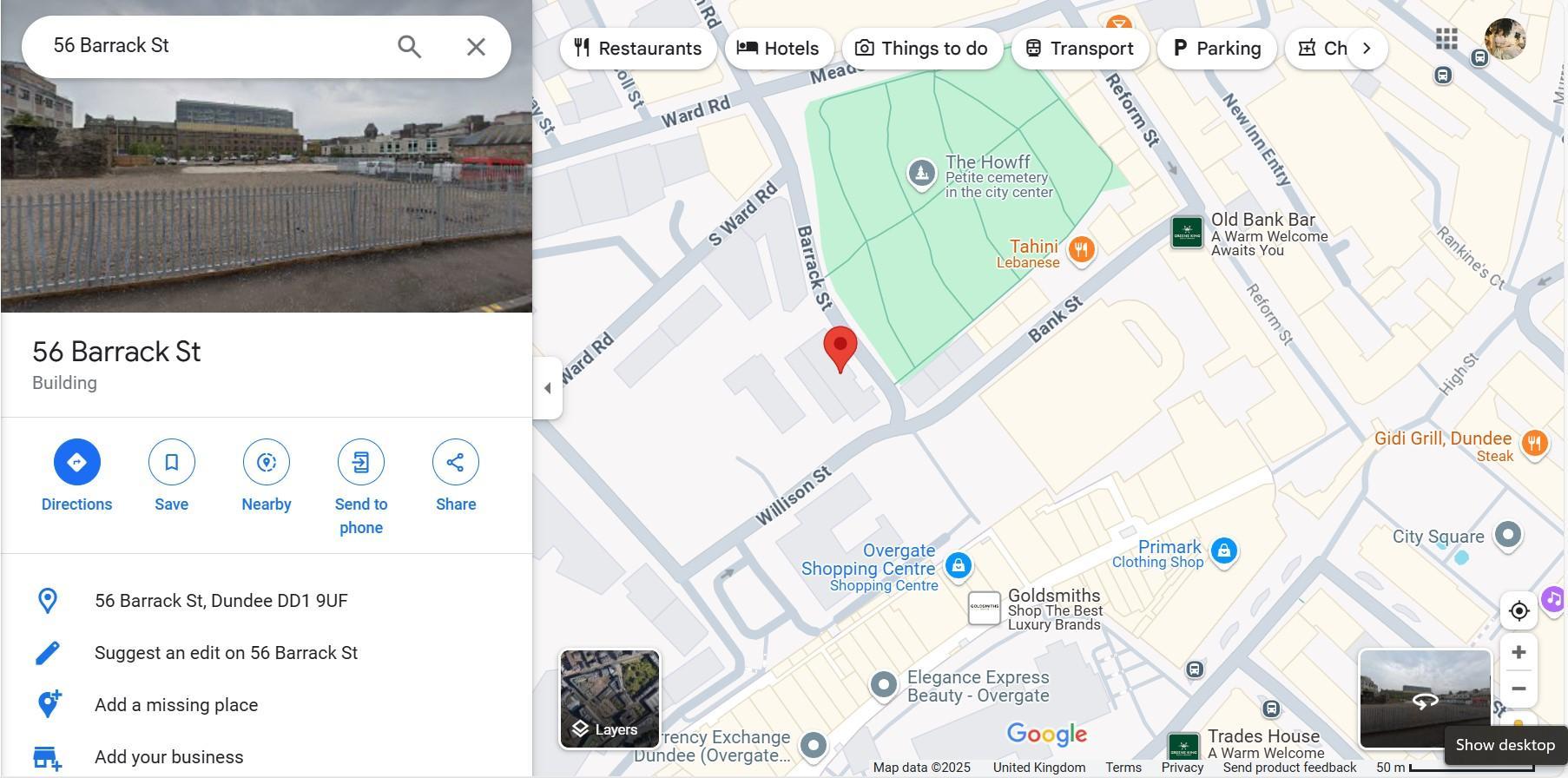 Here are images I have captured of the proposed site that sits on a corner, where Willison Street and Barrack Street meet, in Dundee City Centre. The images have been arranged in a collage alongside a screenshot of the location on google maps.