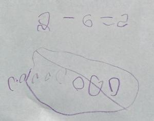Representar problemas con historia de restar con resultado desconocido usando dibujos y números