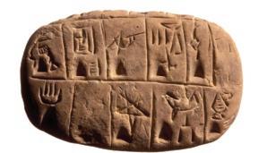 Muestre a sus estudiantes la imagen de la tablilla de arcilla mesopotámica. ¿En qué se diferencia el trabajo de este o esta estudiante del que se muestra en el hueso? ¿En qué creen que estaba pensando? ¿Preferirían hacer su trabajo en papel o en arcilla? Considere pedir a sus estudiantes que creen sus propias tablillas de arcilla con dibujos matemáticos para que quienes estudian arqueología las puedan hallar en el futuro.