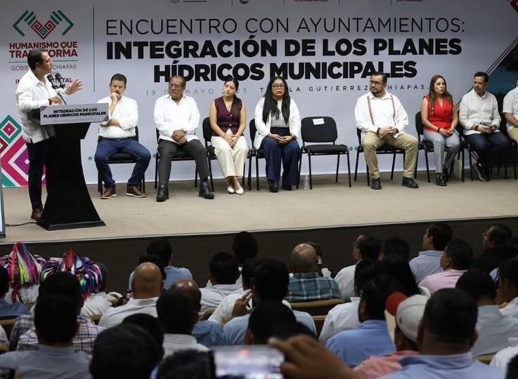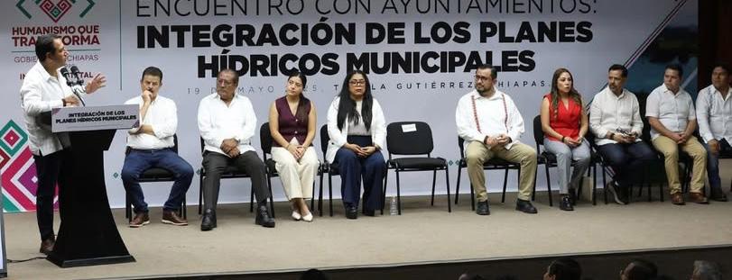 Ante presidentas y presidentes municipales, y las y los directores de obra pública y de organismos de agua potable de los ayuntamientos, el mandatario subrayó que Chiapas cumplirá con los objetivos del Plan Nacional Hídrico impulsado por la presidenta Claudia Sheinbaum Pardo, gracias al compromiso de su gobierno de atender de manera prioritaria las necesidades en esta materia, especialmente en los municipios con mayor rezago social.