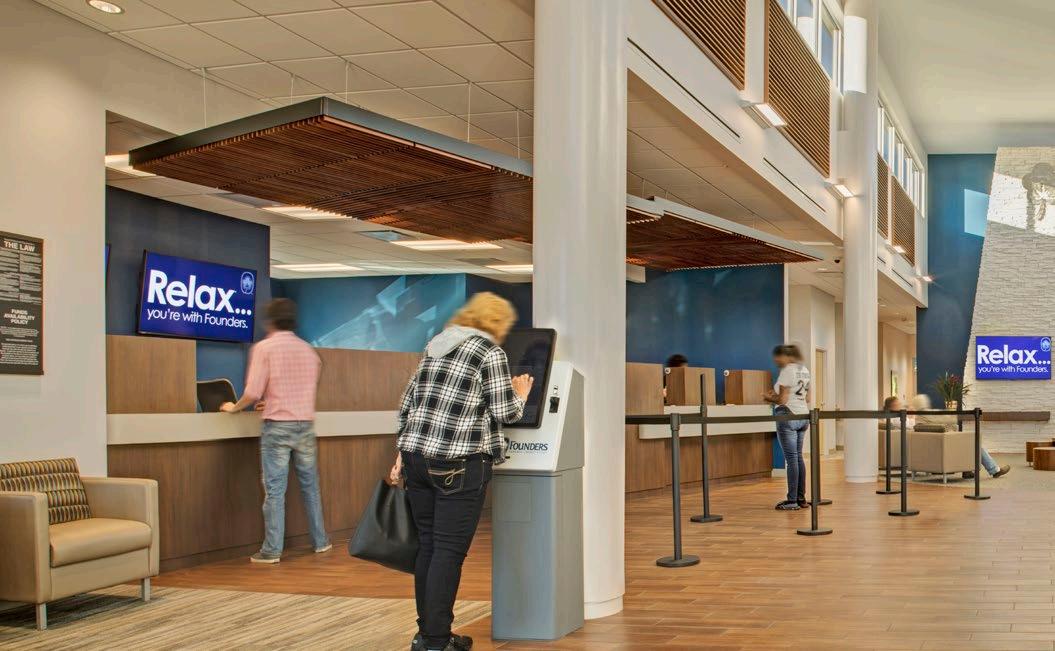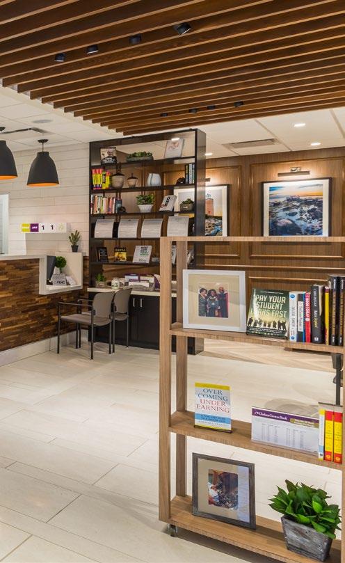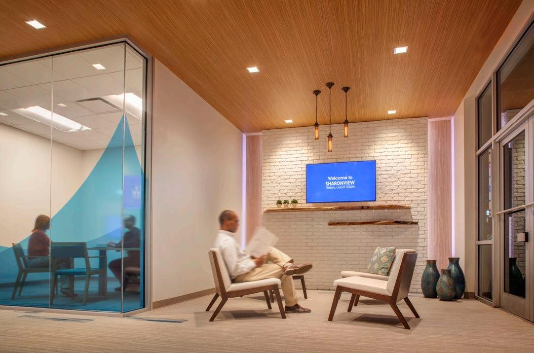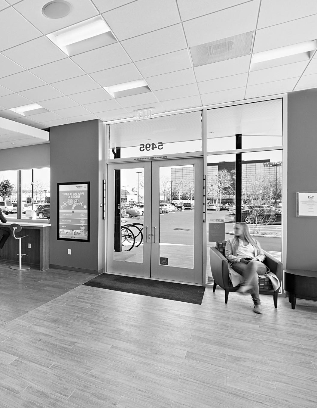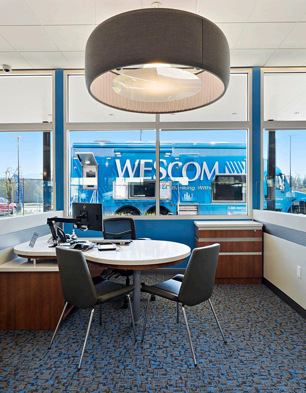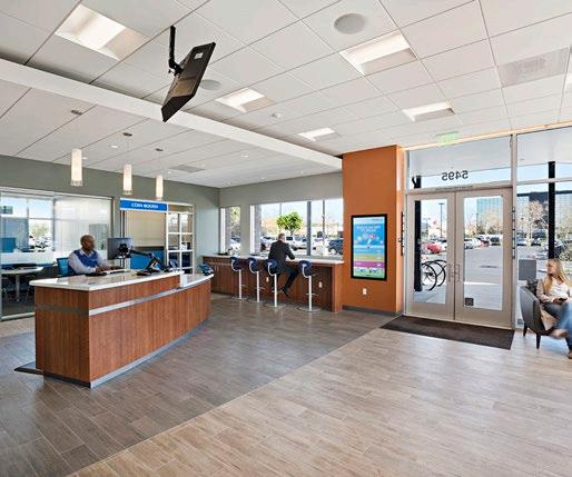 Dedicated to help its members build better lives, the new Wescom Credit Union prototype focuses on providing more meaningful interactions with its customers. With digital displays and new teller stations designed without dividers, the focus is on a more forward-thinking member experience. LEED certified, the floor-toceiling glass incorporates an extension of the architecture with the landscaped footprint.