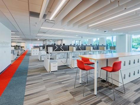 To be sensitive to the scale of the surrounding historic buildings, the design of the Truist building opted for a longer building footprint to minimize the overall height. Inside, the health and wellbeing of employees is kept top of mind with ample communal amenities, sit-stand desks and biophilic design elements.