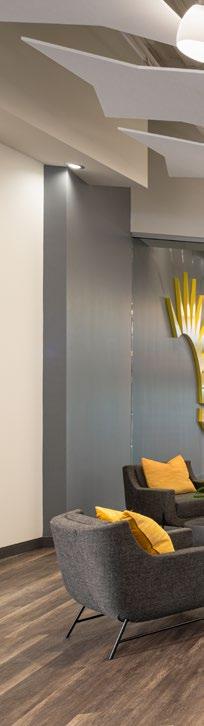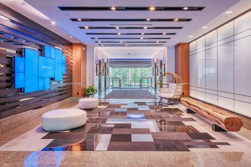 The renovation transforms the space into a warm, welcoming environment that reflects Sharonview’s culture and values. Improvements include a revitalized entry experience, upgraded technology, new interior finishes, and reimagined amenity spaces such as a training center and fitness area. Exterior enhancements, including refreshed landscaping, upgraded lighting, and the activation of the lakeside patio, help create a serene, branded setting aligned with the organization’s mission and vision for longterm growth.