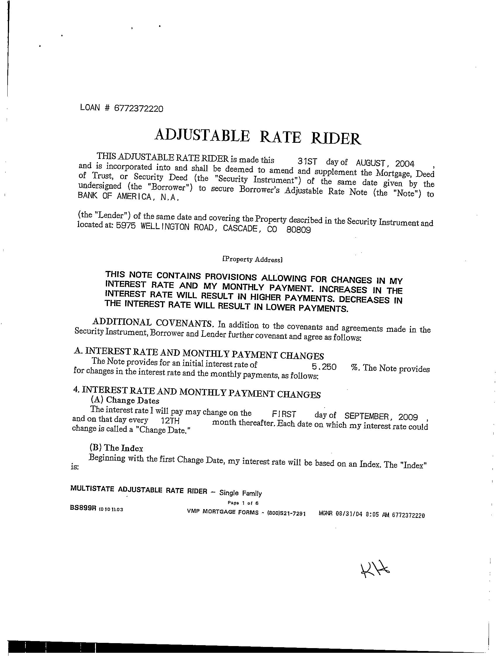 Mtg. Rate Type : ADJUSTABLE INT RATE LOAN FIXED RATE LOAN