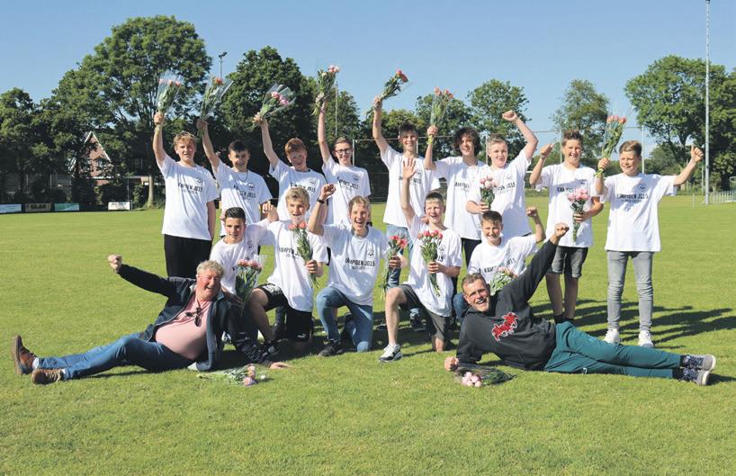 De Weere- JO15 van DWB is kampioen. Afgelopen vrijdag werden Teun Nederpel, Bas Koning, Marco Zee, Koen Verlaat, Stan Lijen, Jesper Vlaar, Ries Sneek, Sem Sneek, Tim Dekker, Marijn Ocheda, Thijmen Molenaar, Luca Sneek, Jesse Sneek, Jan op den Kelder, coach Michel Sneek en coach Richard Dekker gehuldigd op het voetbalveld in De Weere. Een mooi kampioensfeest met erehaag van ouders en familie, speciaal versierde taart, rondje door het dorp en een gezellige barbecue.