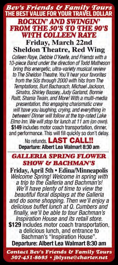 Departure: Albert Lea Walmart 9:00 am
