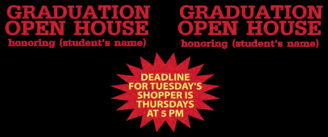 Deadline for the May 27th shopper will be Wednesday, May 21st by 5 p.m.