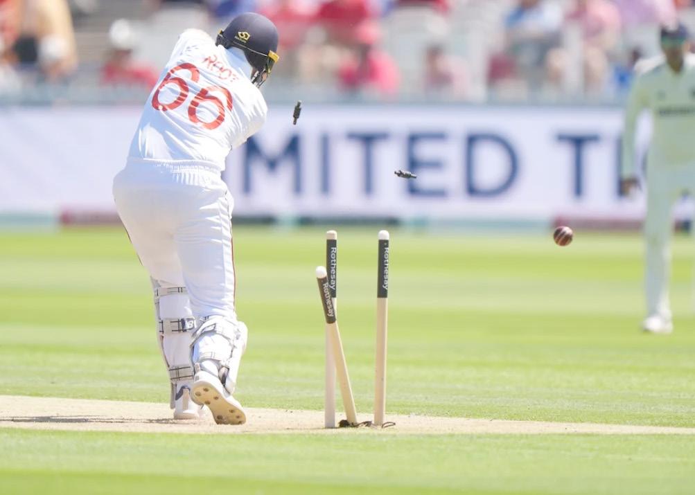 Moeen Ali (6) lofted Blair Tickner over cover for four, but the pacer had the last laugh when he plucked out Ali’s middle stump at 32-2.