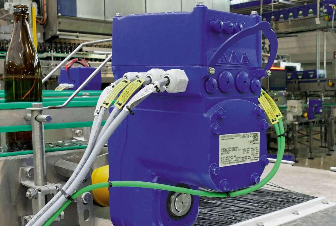 Das mechatronische Antriebssystem Movigear performance vereinigt Synchronmotor, Getriebe und Frequenzumrichter als vollintegrierte Einheit in einem kompakten Gehäuse. Es wurde speziell für die horizontale Fördertechnik entwickelt und kommt in zahlreichen Brauereien zum Einsatz.