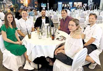 Dinner im VIP-Bereich: Corneli Elert (l.) und Sandrine Schaffarczyk (Wortmann) mit Carsten Schardt, Dominic Terruli (Skill Computer), Sören Korf (Syscon) und Patrik Tillmann