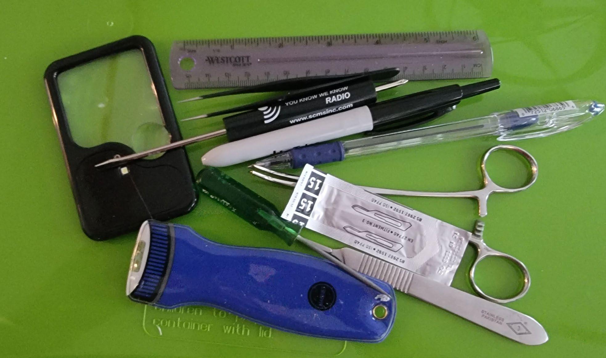 Small items for your “go box” Don’t overlook the utility of a pair of tweezers or a magnifying glass.