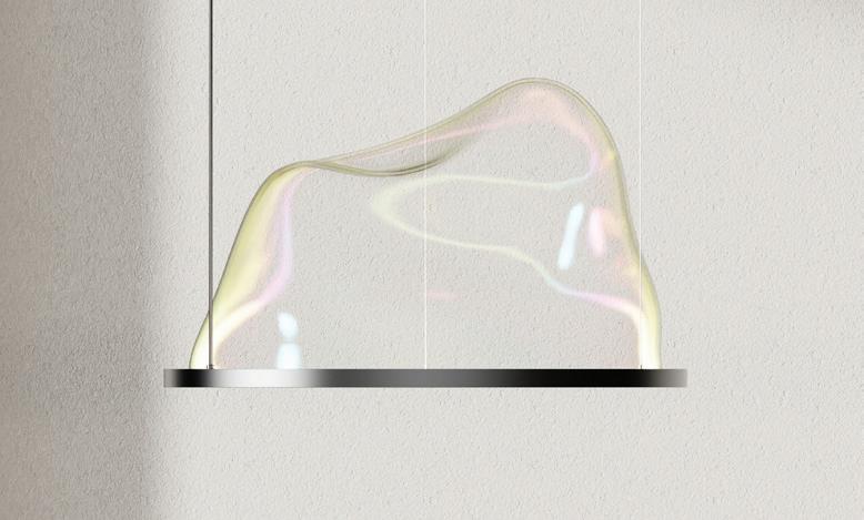 Blown-glass, half-bubble lamps remind of childhood magic.