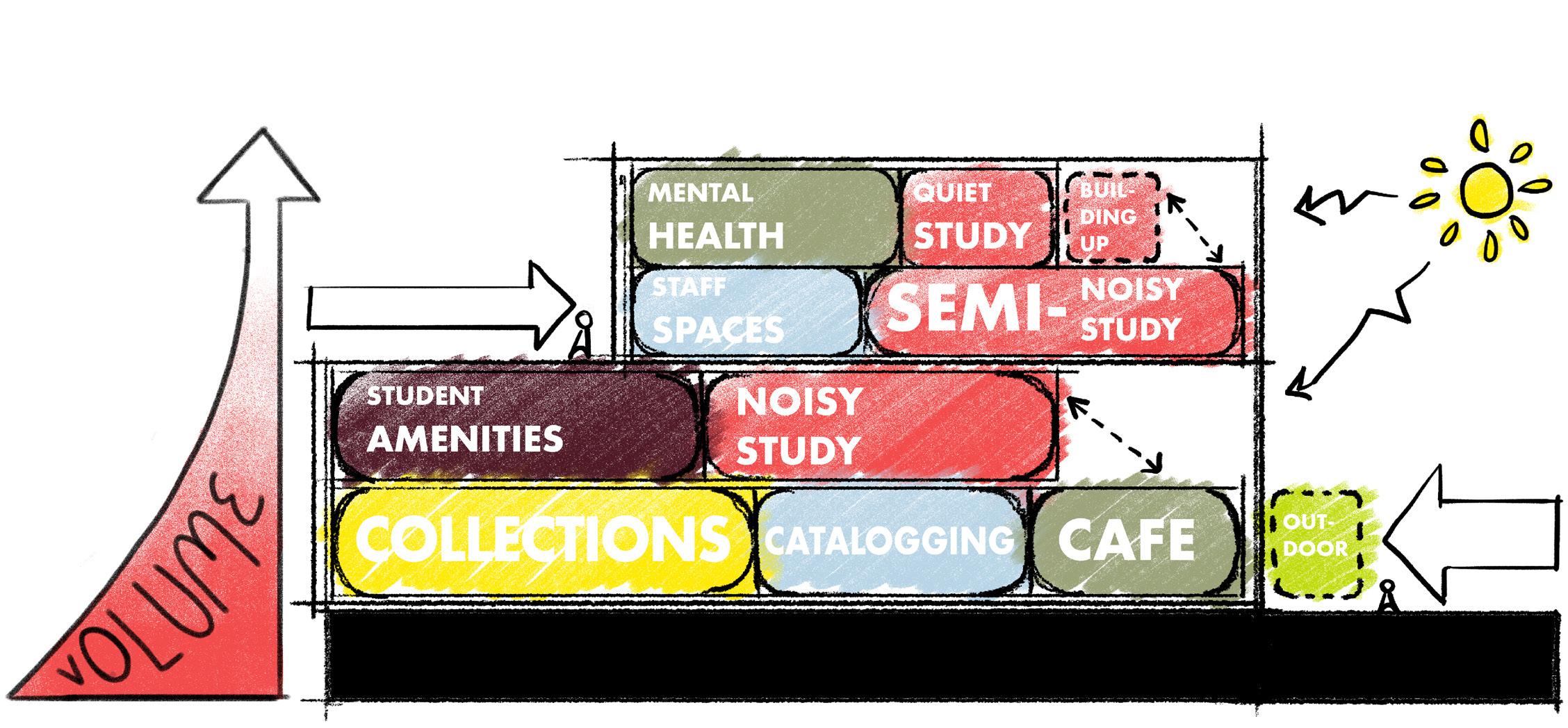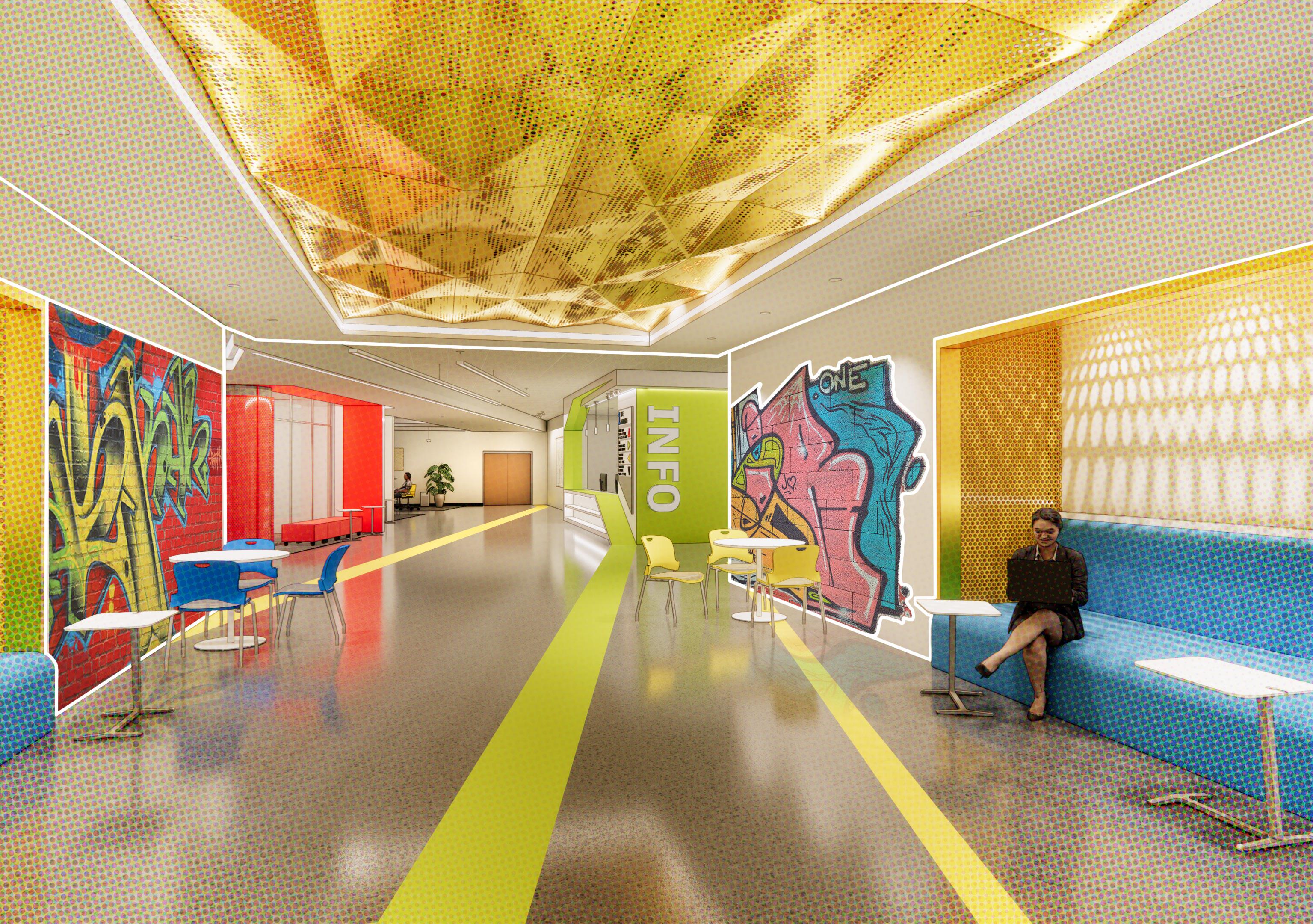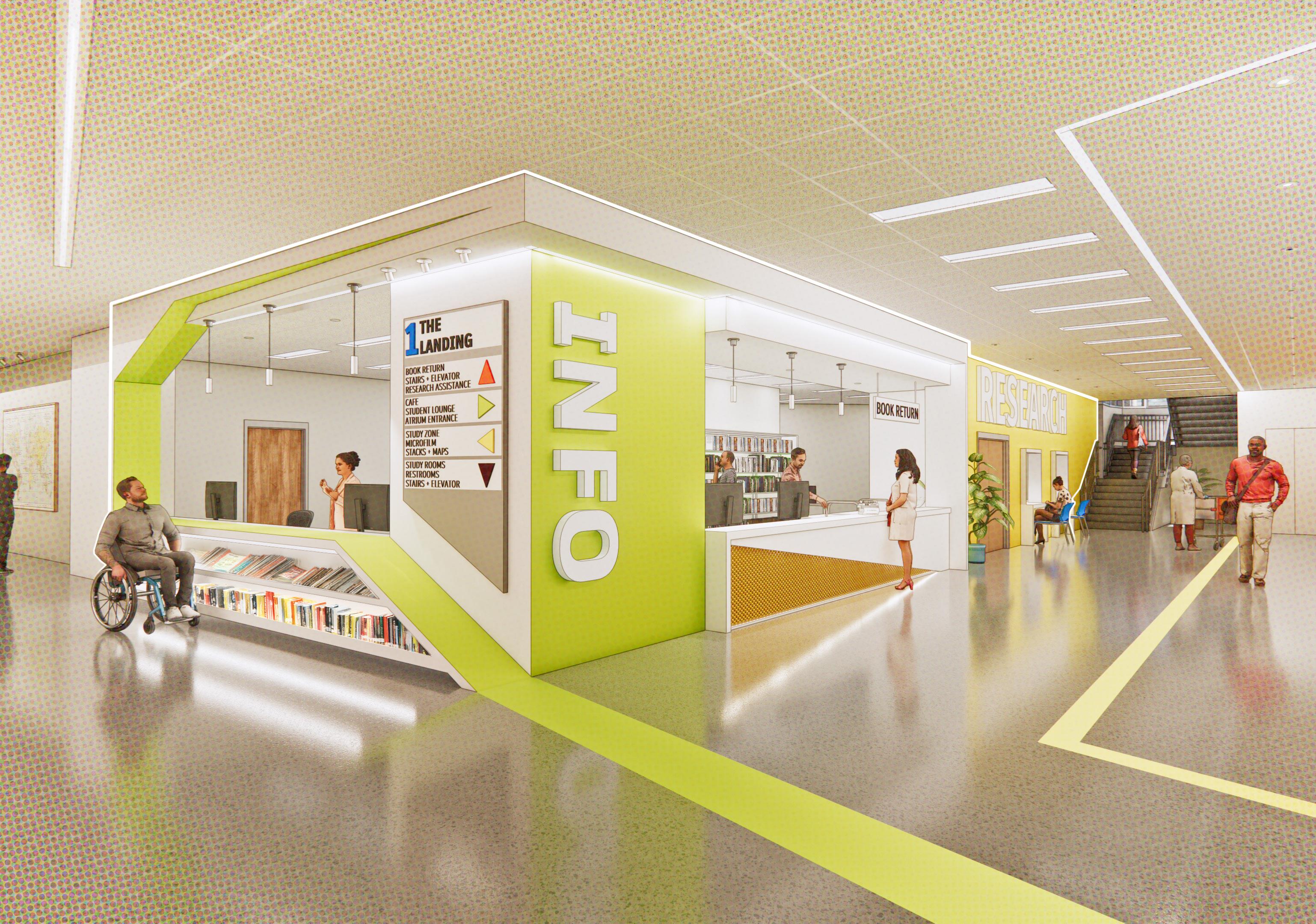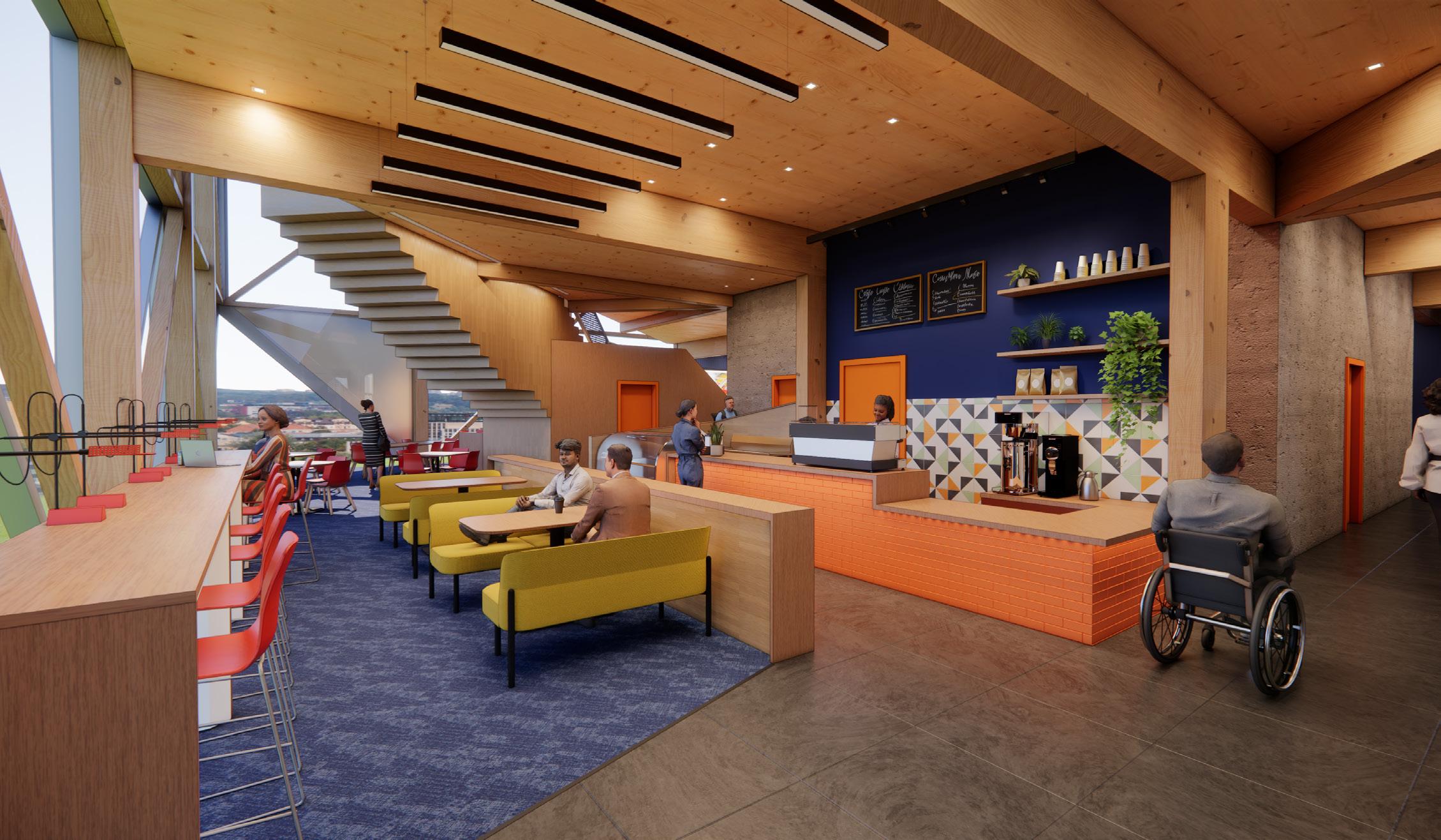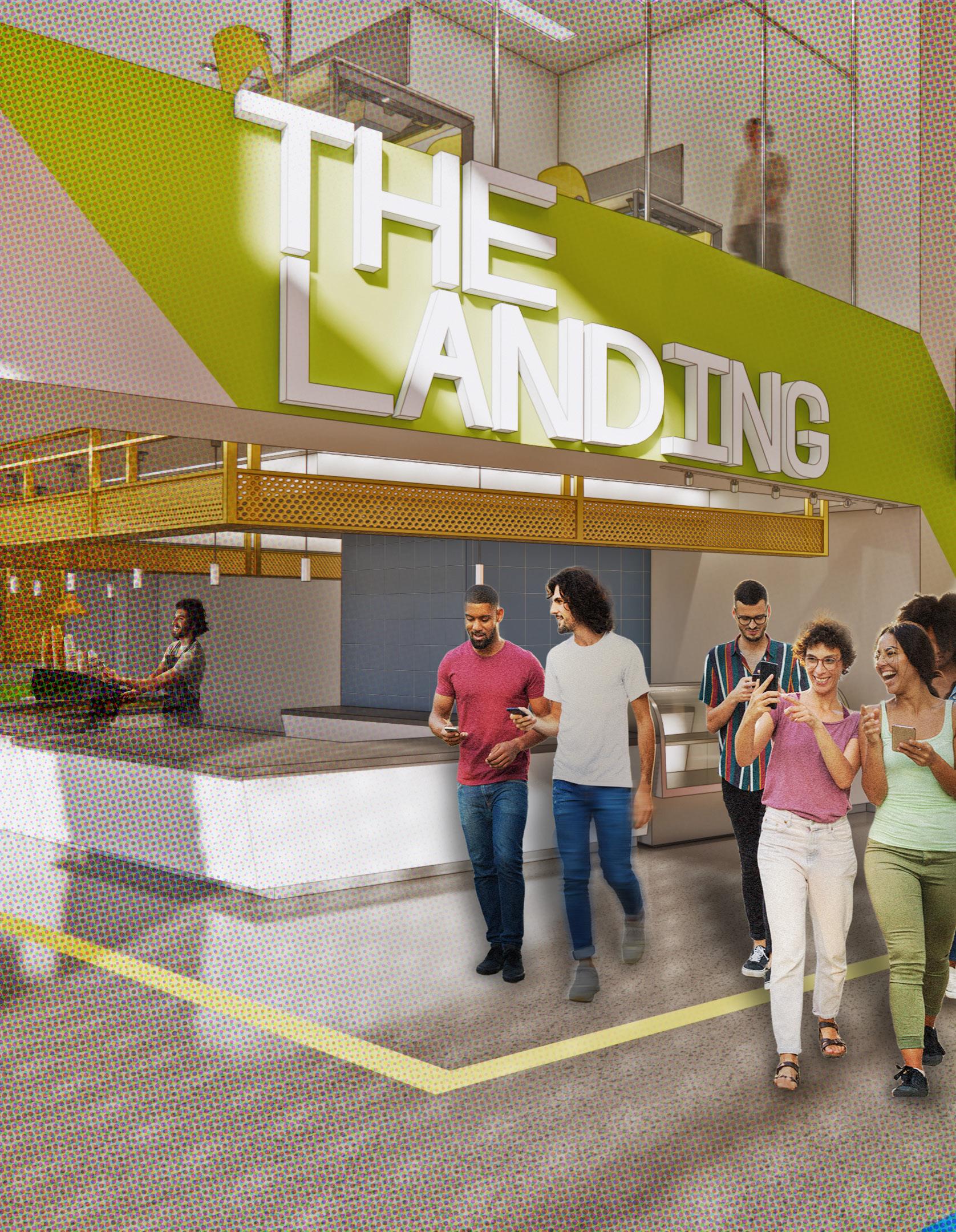 The Landing is a proposed cafe, keeping in mind the desires of staff and students for access