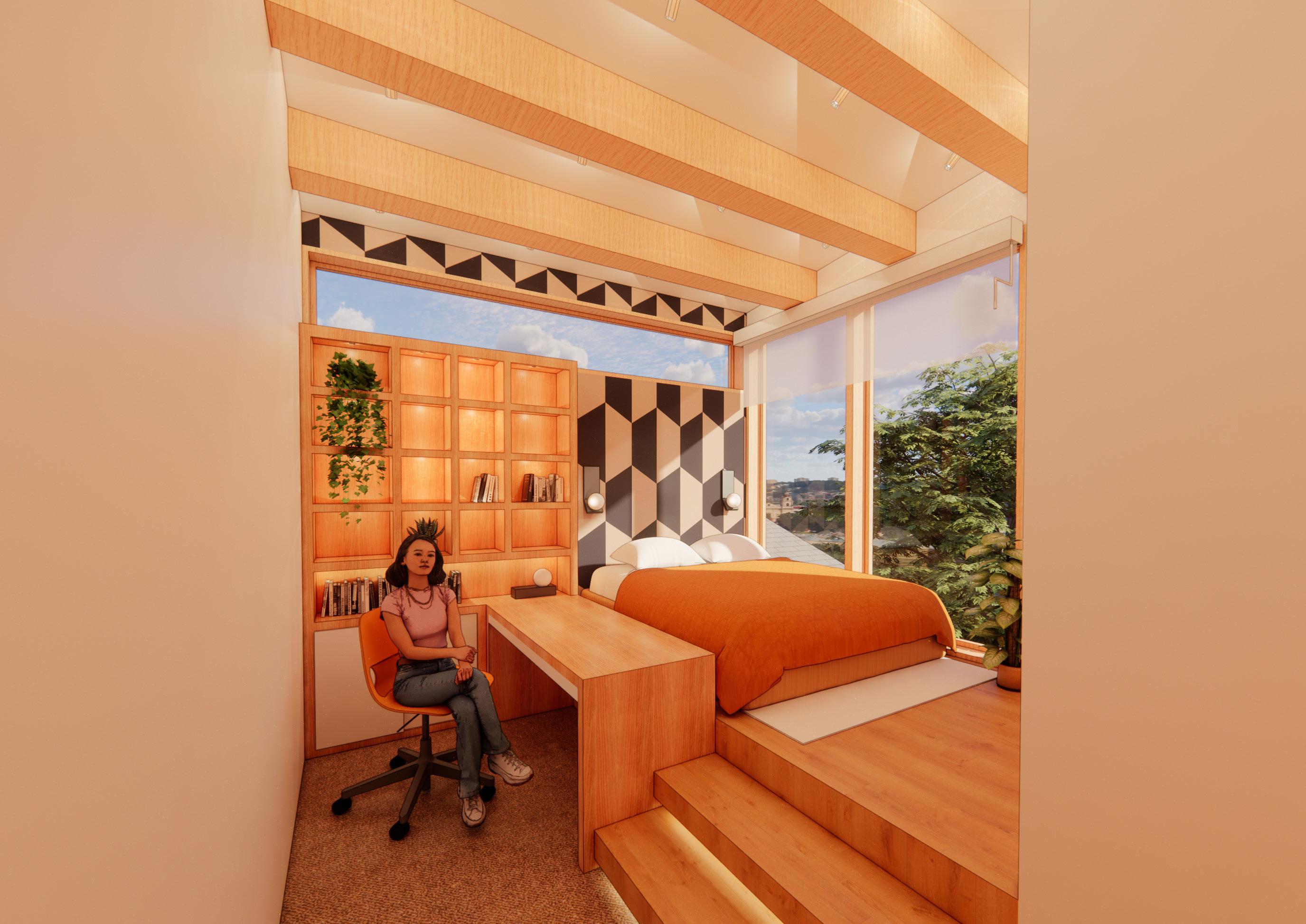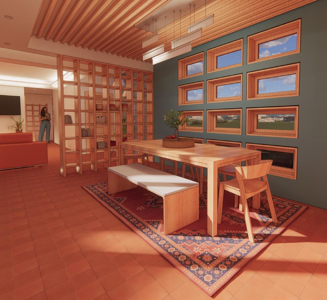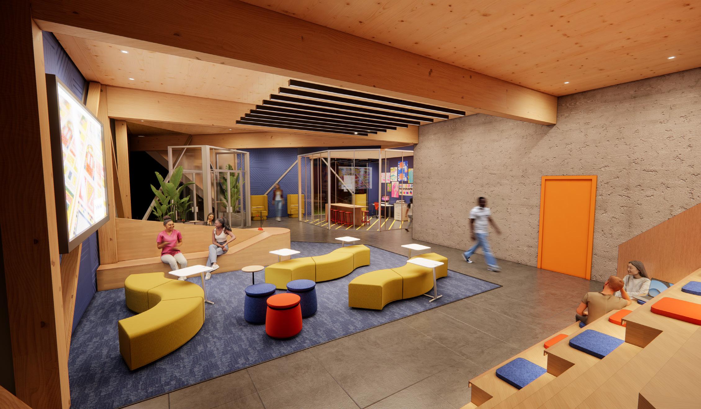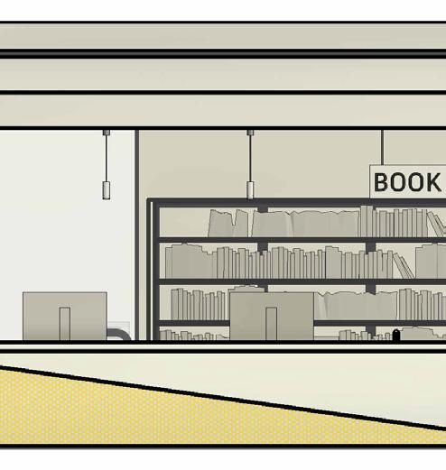 To increase access to daylight and promote well-being, the student lounge is programmed just